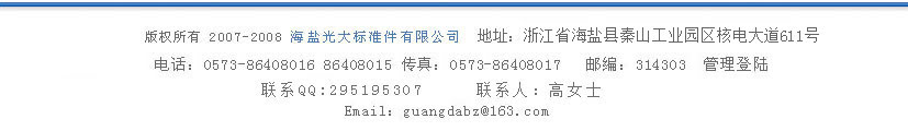 海鹽光大標準件有限公司座落在東海之濱的杭州灣畔。東距上海100km,西距杭州80km,北距嘉興40km。乍嘉蘇高速公路穿縣而過,連接滬杭、滬寧、京滬高速公路和在建的杭州灣跨海大橋相接,交通十分便利。